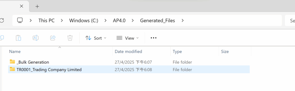 Home / AP4.0 User Manual – Table of Contents / AP4.0 User Manual – 04. Preparation for Generation of Audit Files / AP4.0 User Manual – 04.3 Set Up Client Folders Audit Program 4.0 - User Manual Back to Table of Contents Next Page 4. Preparation for Generation of Audit Files: 4.3 Set Up Client Folders: By Clicking the button:”2. Set Up Client Folders”, the system will create a folder for each audit client. Check the following File Path to see if a folder has been created for each audit client: C:\AP4.0\Generated_Files\ Back to Table of Contents Next Page